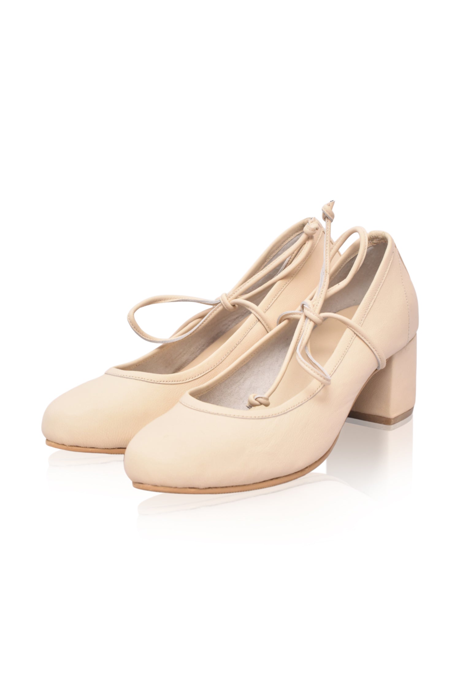 The handcrafted Jules leather heels are made in elegant and classic silhouette and are accentuated with lace up detailing across the vamp. Featuring sturdy leather wrapped block heel they are comfortable and stylish.